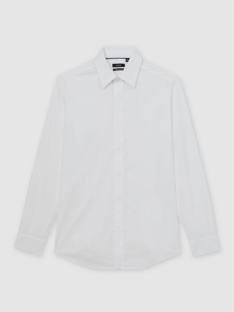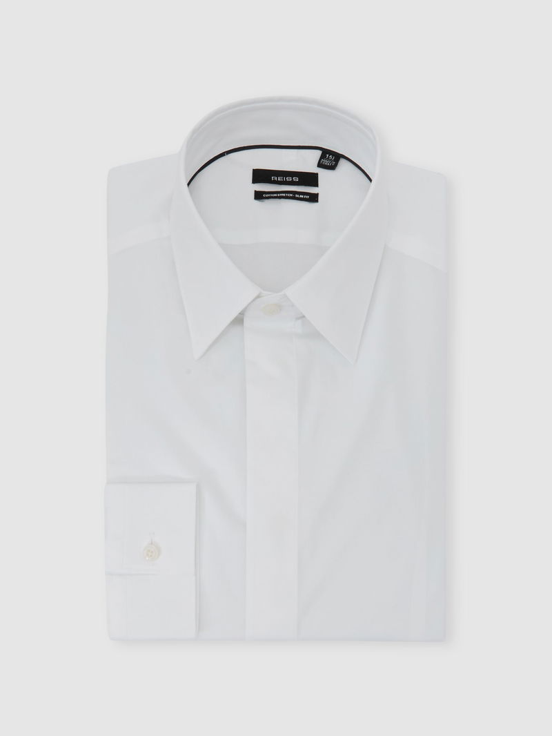 Stretch-Cotton Concealed-Placket Shirt Slim-Fit In White