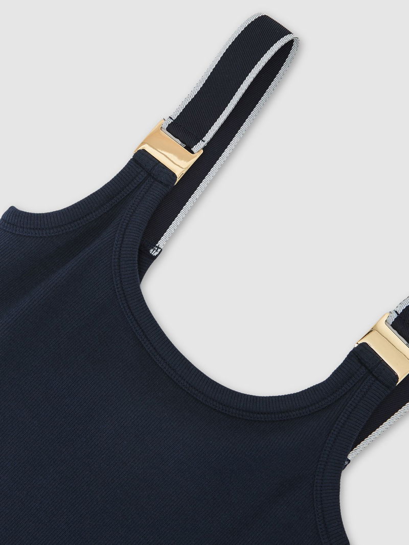 Stretch-Cotton Hardware-Detail Vest In Navy/White