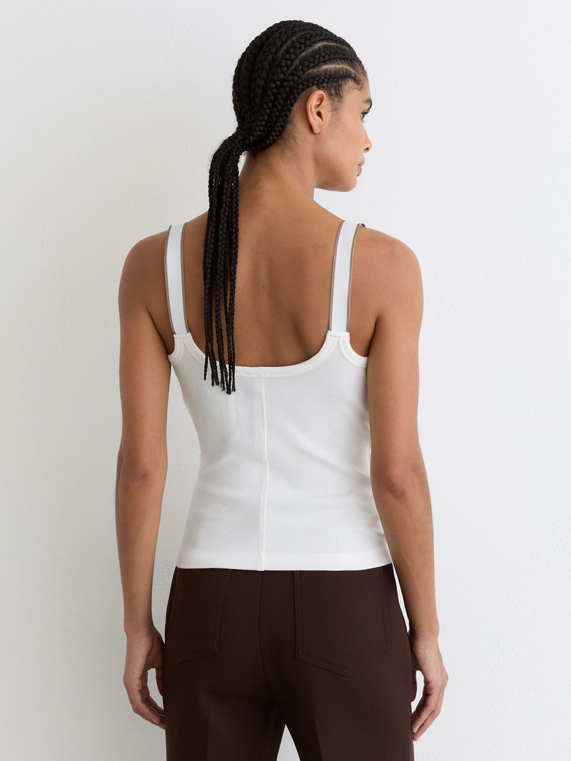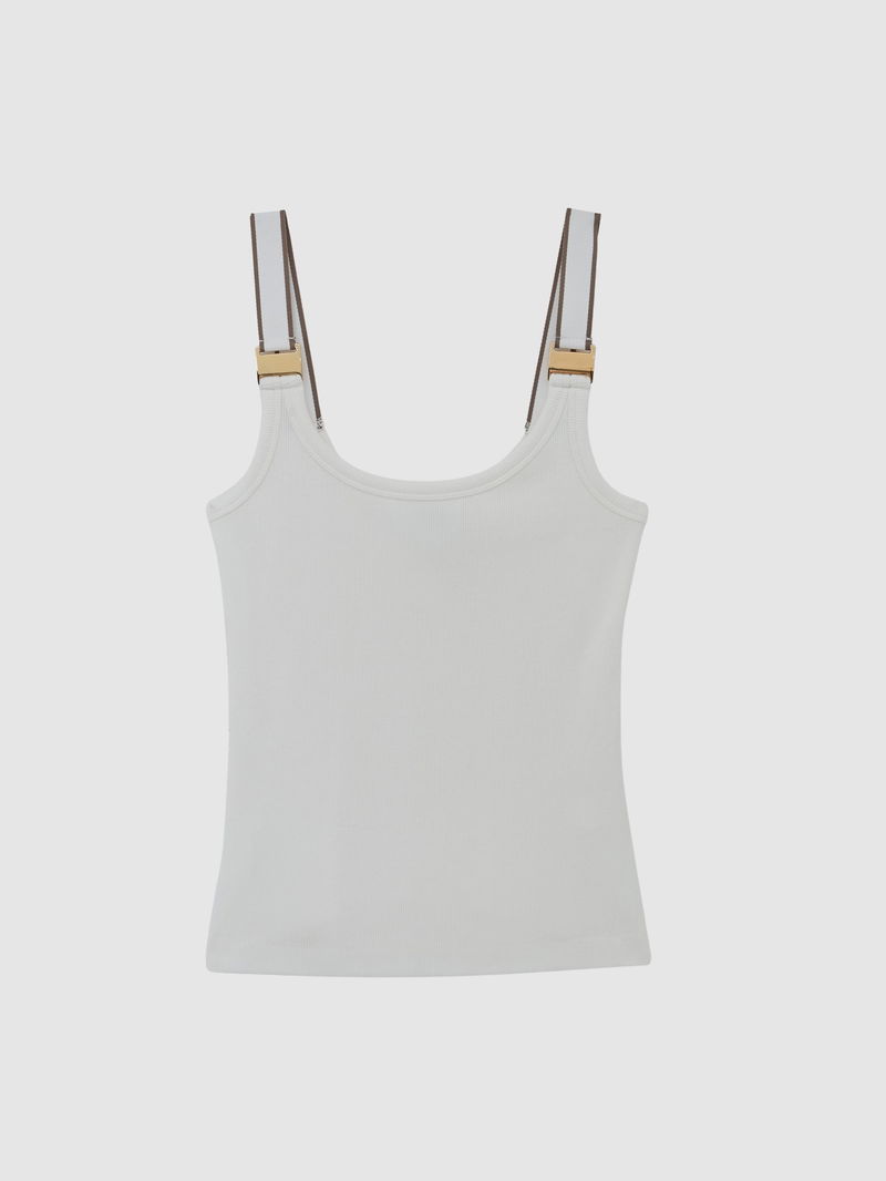 Stretch-Cotton Hardware-Detail Vest In White/Camel
