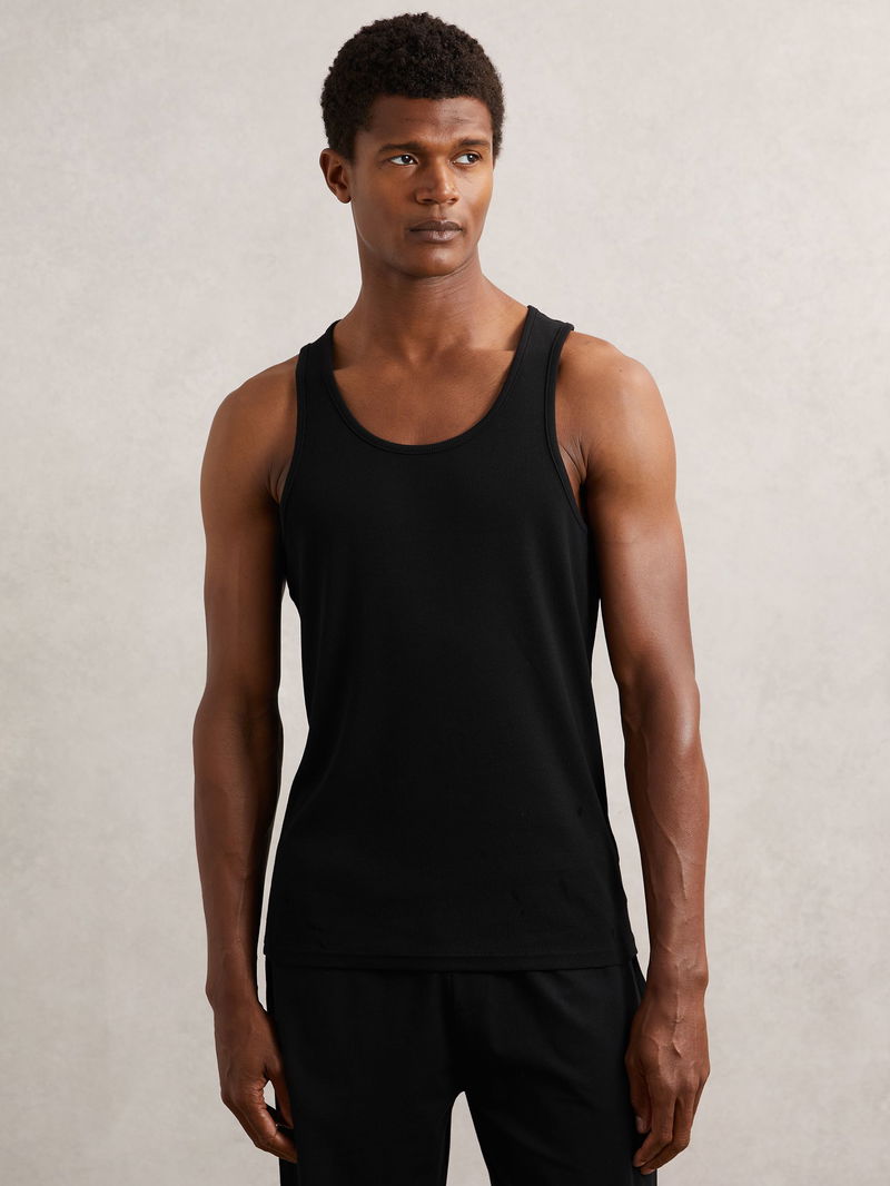 Stretch-Cotton Ribbed Vest In Black