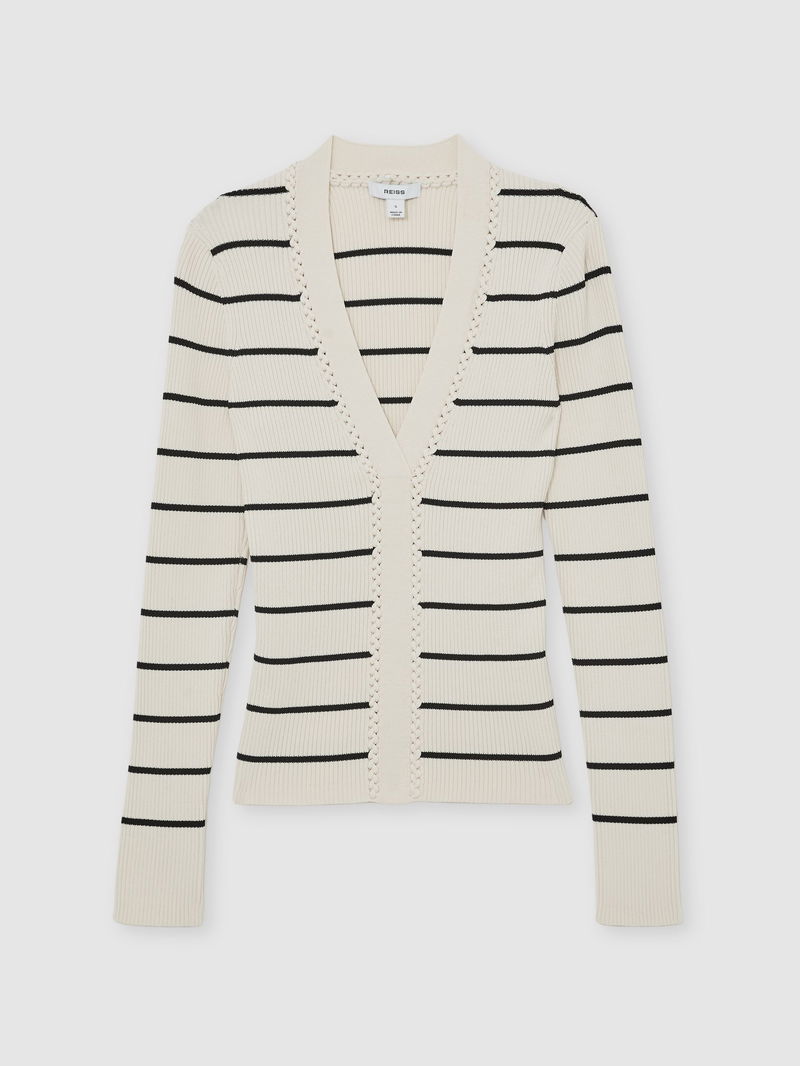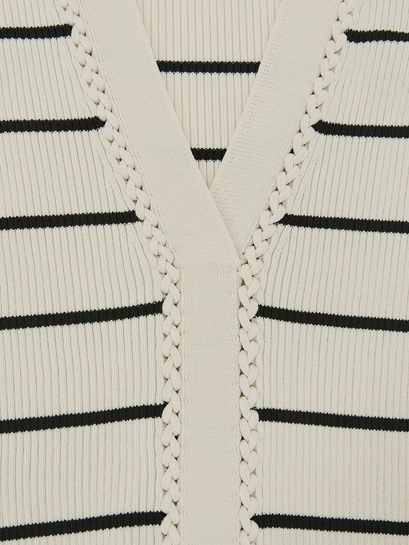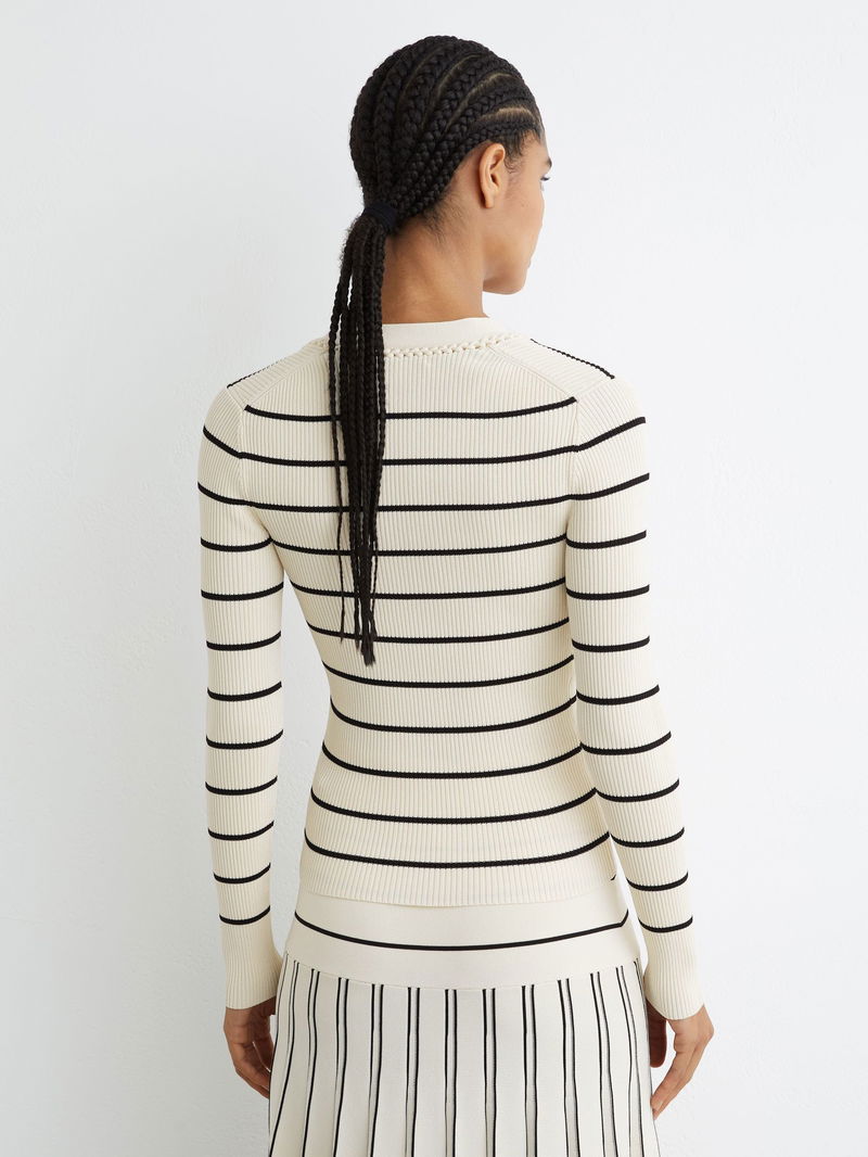 Stripe Craft-Stitch Rib-Knit Top In Ivory/Black