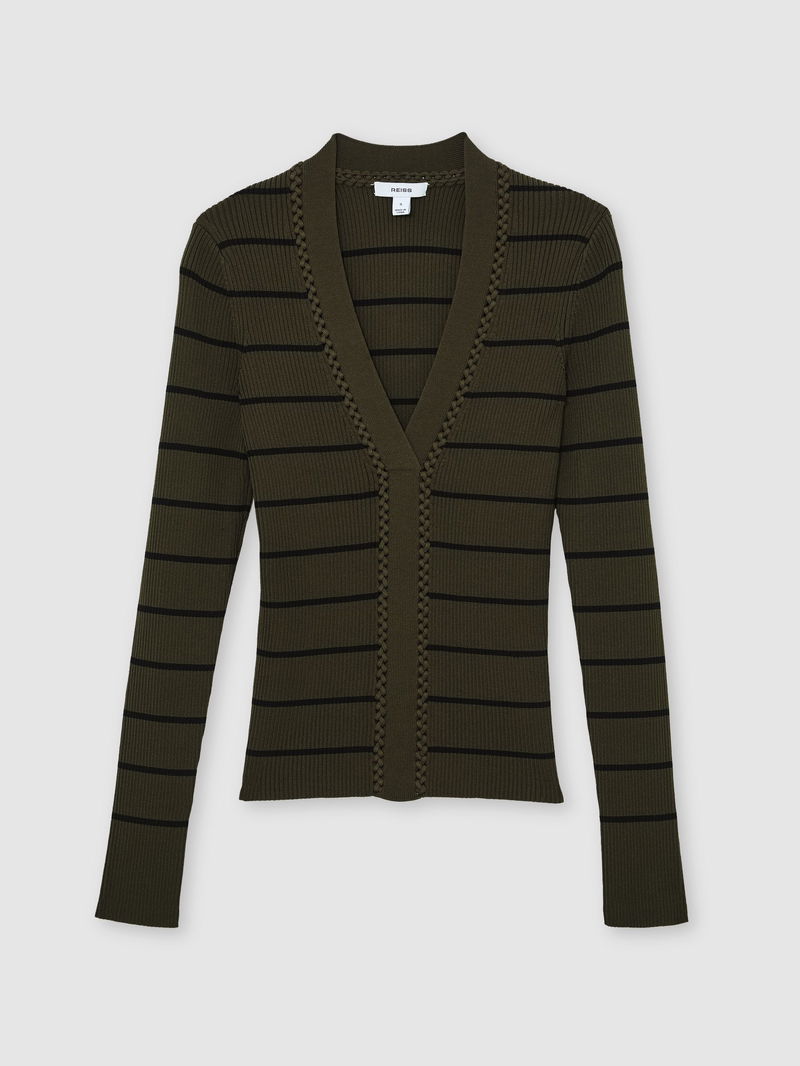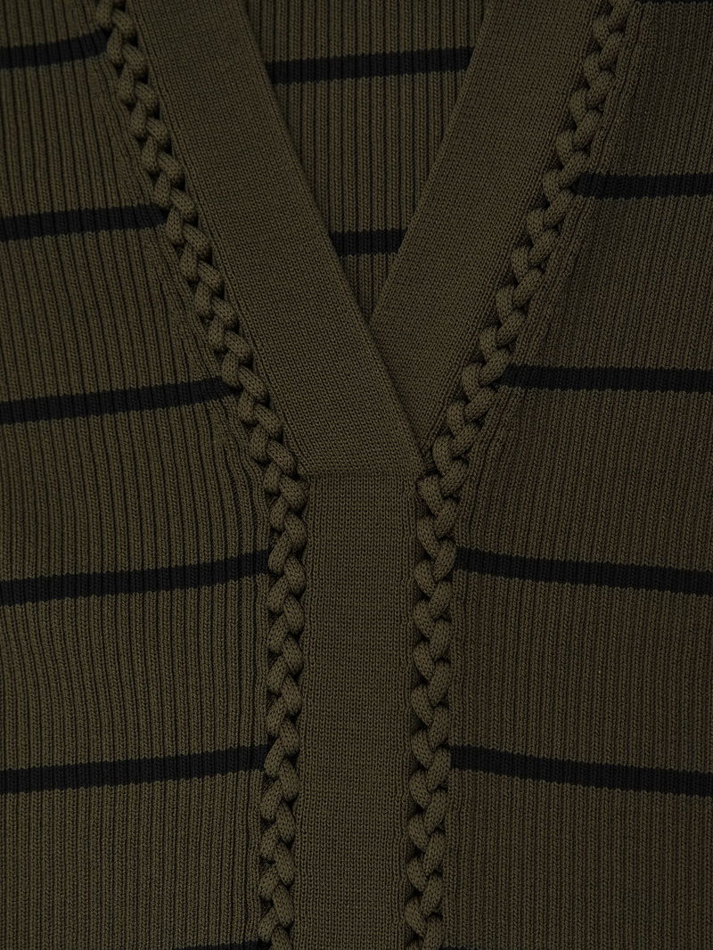 Stripe Craft-Stitch Rib-Knit Top In Khaki Green/Black
