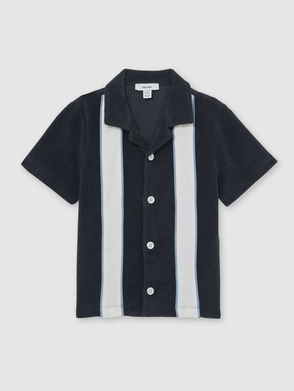 Stripe Knitted Cuban-Collar Shirt In Navy/White