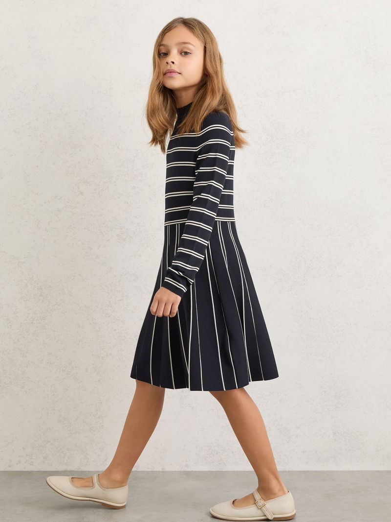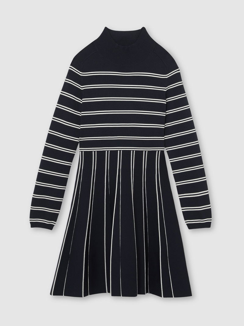 Stripe Knitted Skater Dress In Navy/Ivory