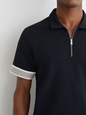 An update on the classic polo T-shirt, the Surf will be your new favourite with its contemporary finish for fresh appeal. The textured design is crafted from a cotton-stretch fabrication and lends a modern look. This style is complete with a half zip-neck close. Pair with tapered trousers and loafers for a stylish casual mood.