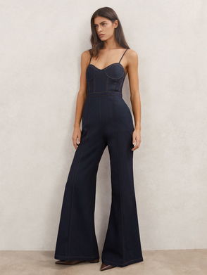 A tailored silhouette and flap pockets detailed with metal studs give the Kaia jumpsuit a utilitarian feel. The wide legs are subtly elevated by a single front pleat, whilst stitched tucks add structure to the top. It’s finished with a tonal, waist-cinching belt.