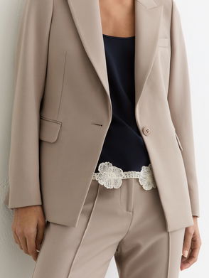 Its wool blend fabric has a textured hand-feel which adds interest to both casual and smart edits.