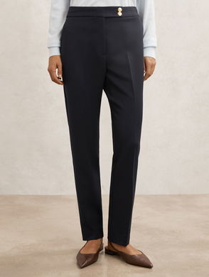 The Sienna Gold trousers are crafted from a cotton-blend with metallicised thread, delivering a striking, lustrous finish. Front pleats define the tailored shape, while turn-up cuffs neatly finish the tapered silhouette.