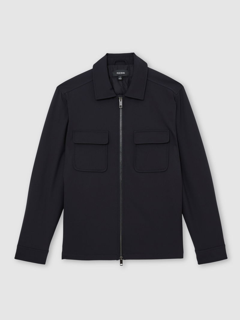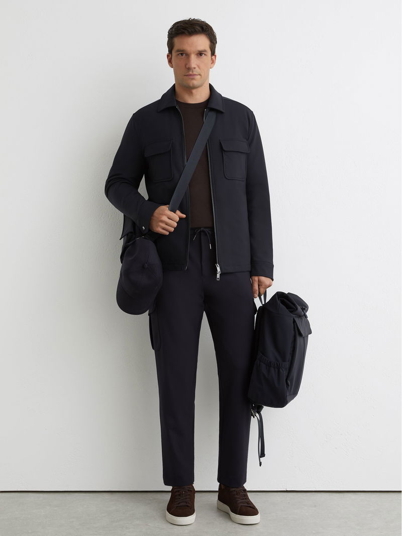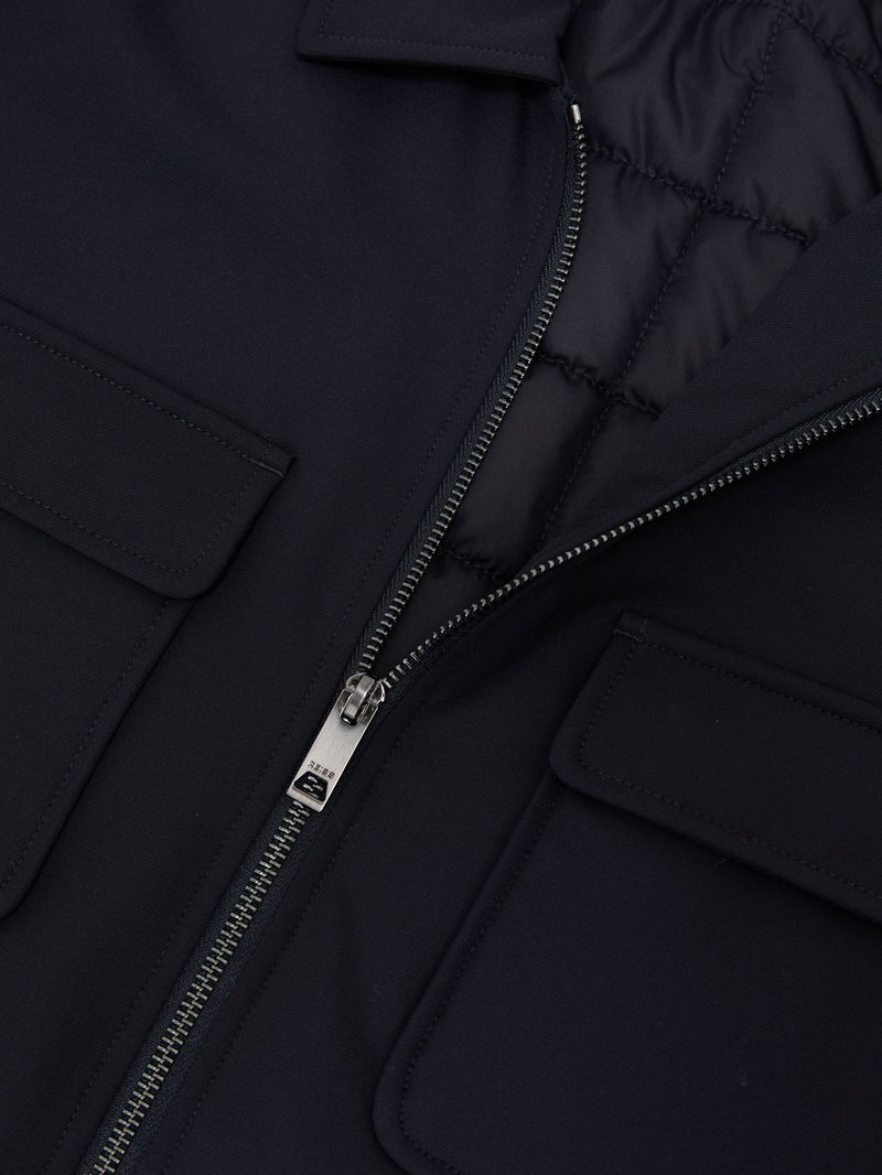 The Oshei overshirt is crafted from technical fabric with a lightly quilted interior for warmth. It has chest flap pockets, press-stud cuffs and a dual-zip front.