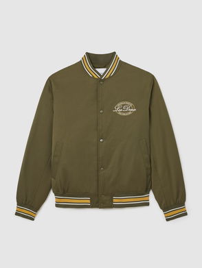 Les Deux’s technical varsity jacket is crafted from an organic cotton blend in a classic collegiate bomber style, featuring an all-over stripe pattern on smooth technical twill.