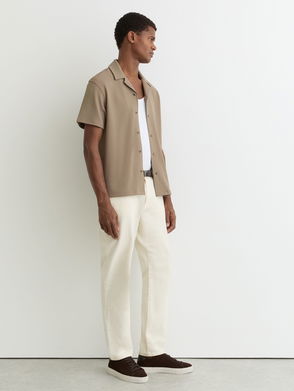 The Camel Brown Oscar T-shirt is cut from textured fabric for a tactile feel, elevated by contrast tipping at the sleeves. A classic crew neckline completes the design.