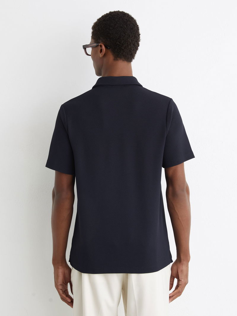Textured Half-Button Polo Shirt In Navy