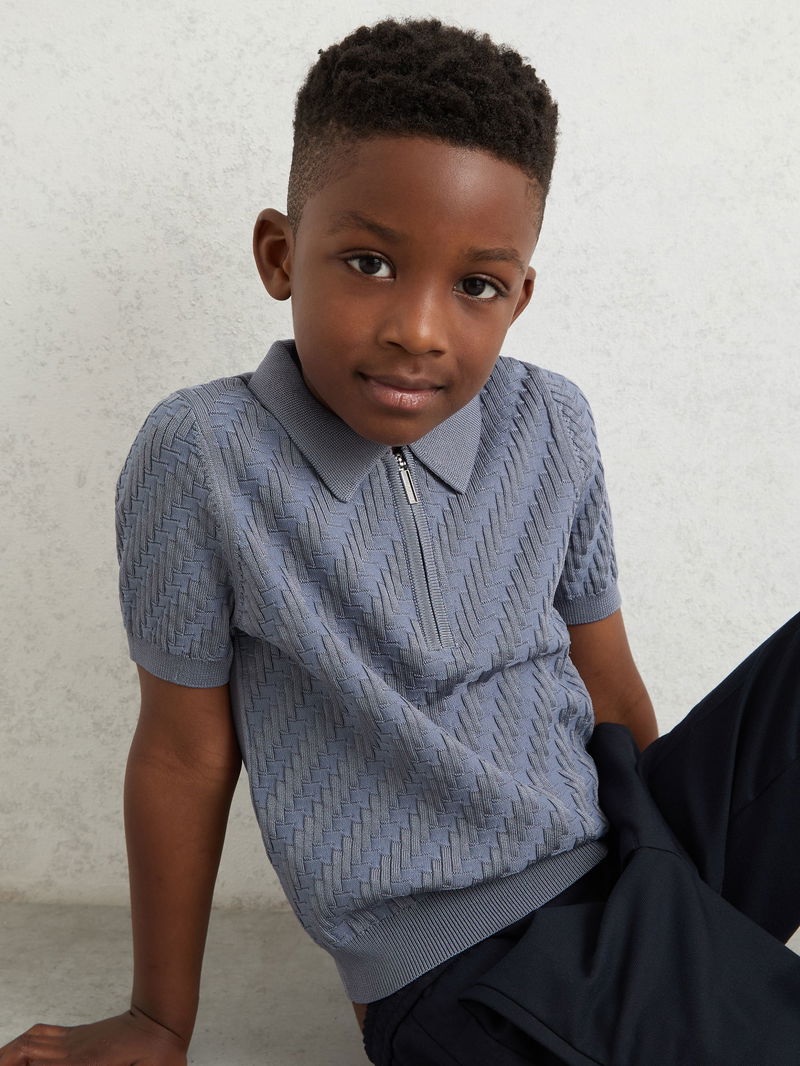 A textured knit with a slight sheen defines the Atticus polo shirt, creating a tactile geometric pattern. A half-zip fastening adds a modern edge, while a polo collar and rib-knit trims complete the design. Textured knit Polo collar, Rib-knit hem and cuff,s Half-zip.