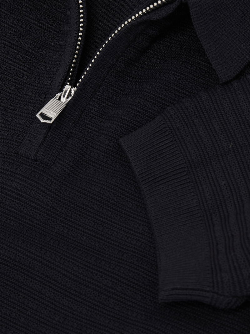 Textured-Knit Half-Zip Polo Shirt In Navy
