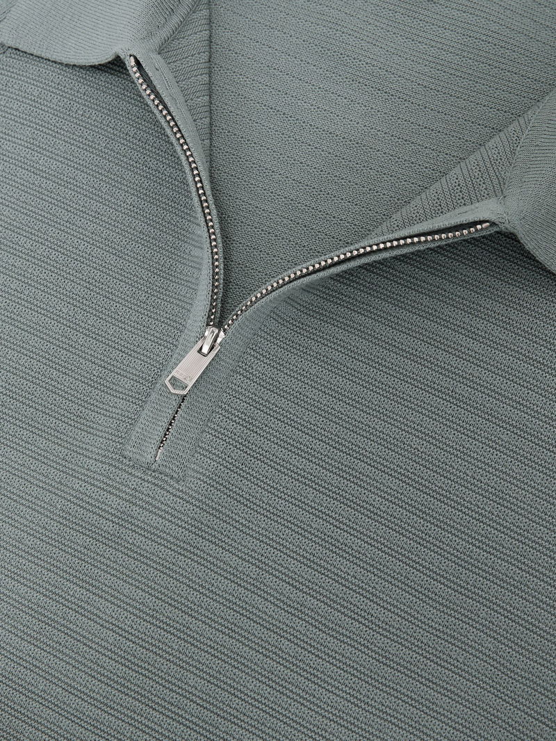 Textured-Knit Half-Zip Polo Shirt In Sage