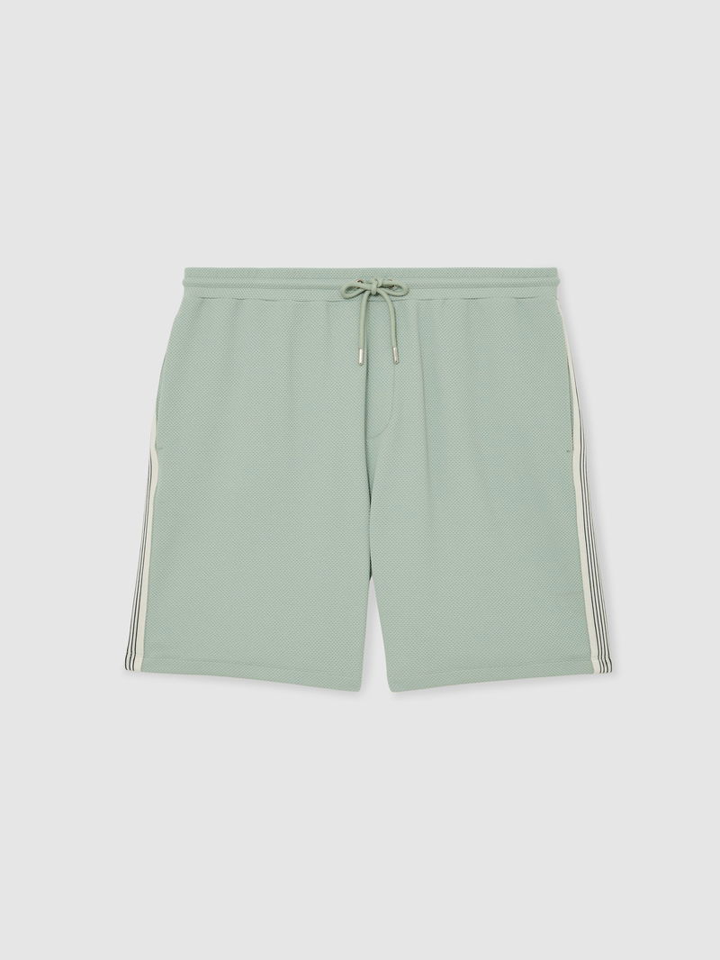 Textured Side-Stripe Drawstring Shorts In Mint Green
