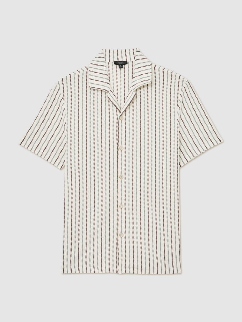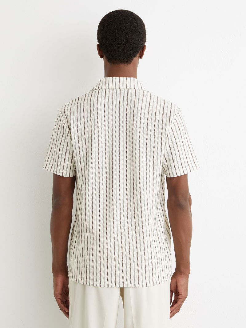 Textured-Stripe Cuban-Collar Shirt Cotton-Blend In Green/Brown Multi