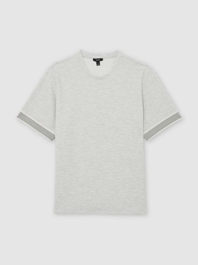 Textured Tape-Cuff Modern-Fit T-Shirt In Grey Melange