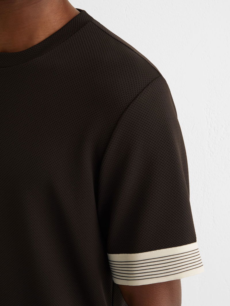 Textured Tape-Cuff T-Shirt In Chocolate Brown