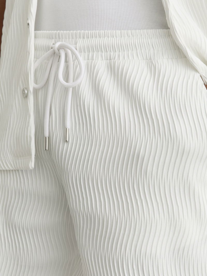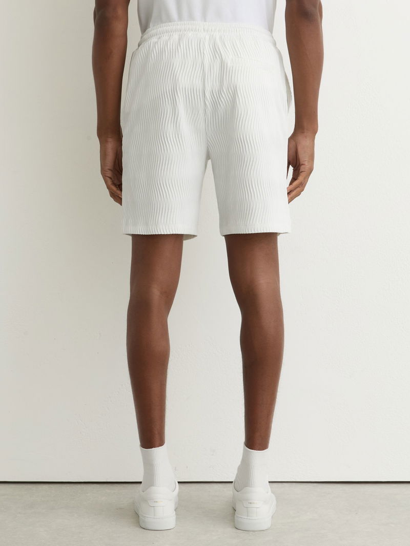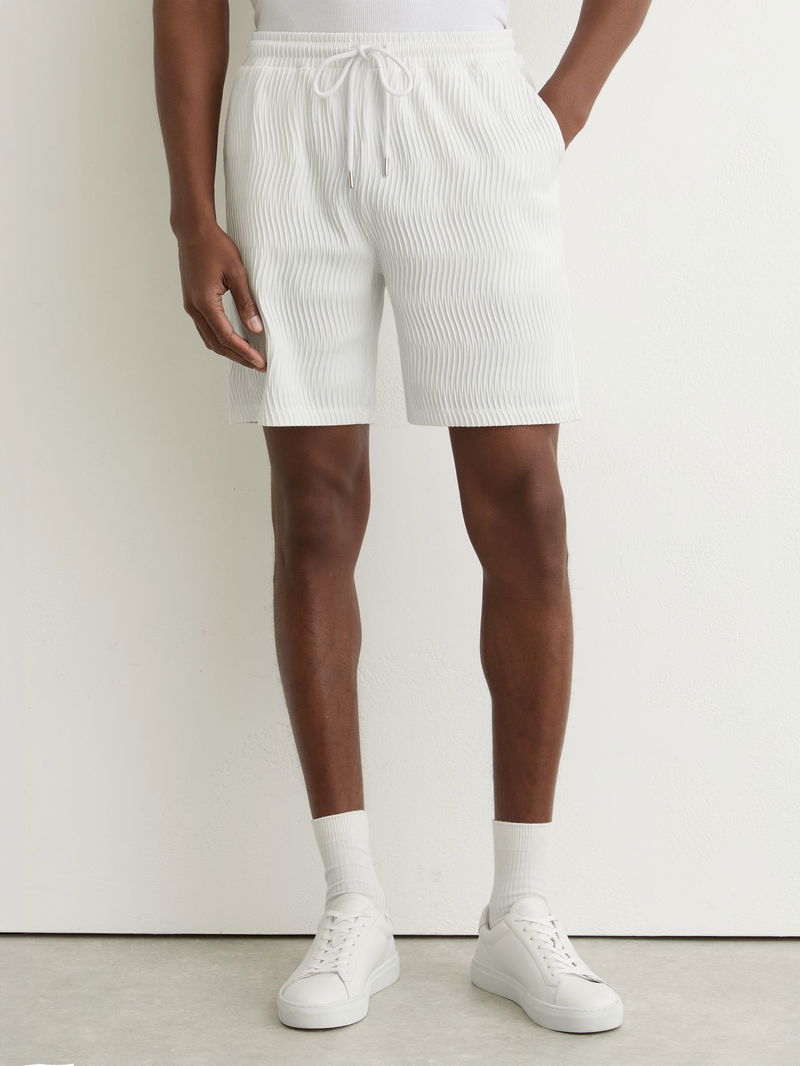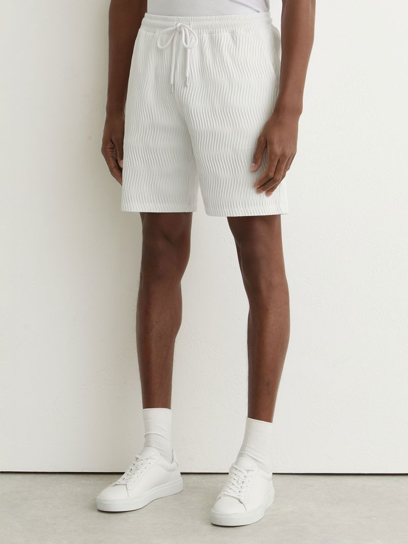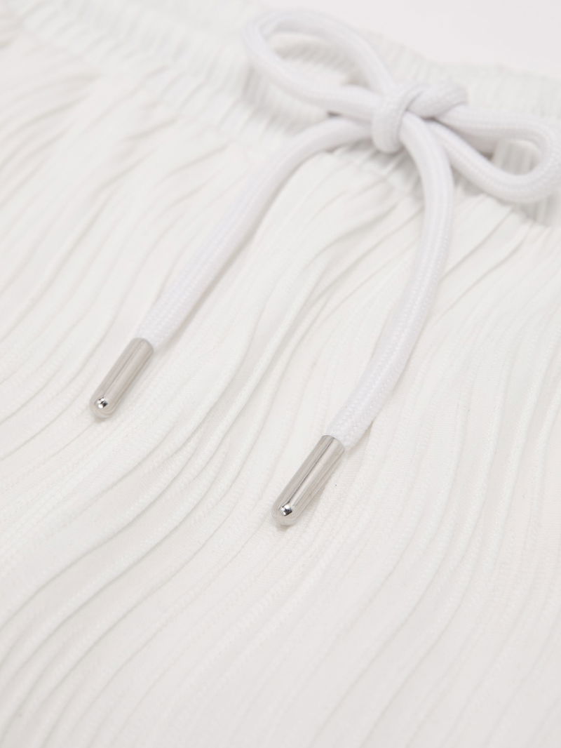 Textured-Wave Drawstring Shorts In White