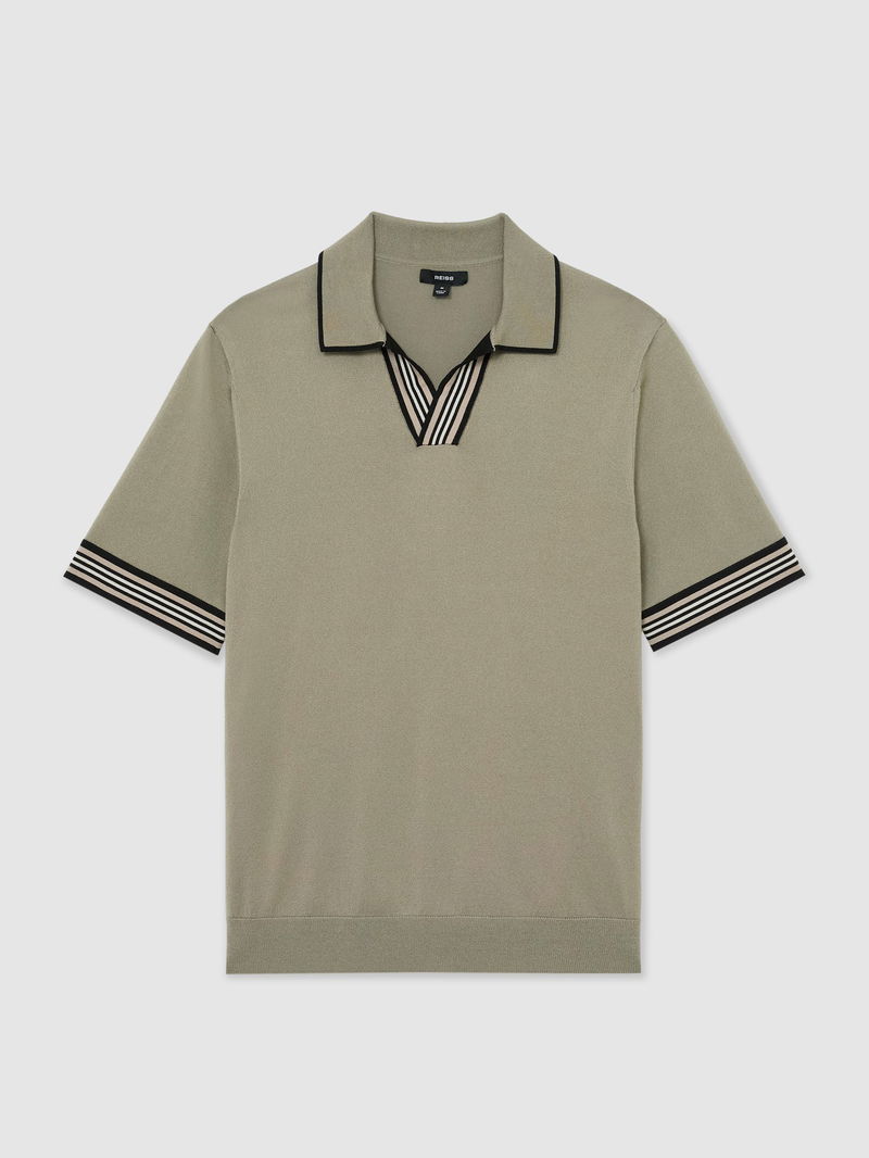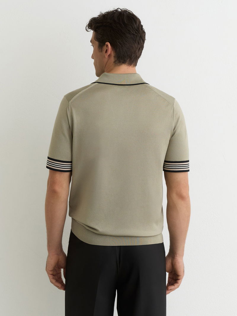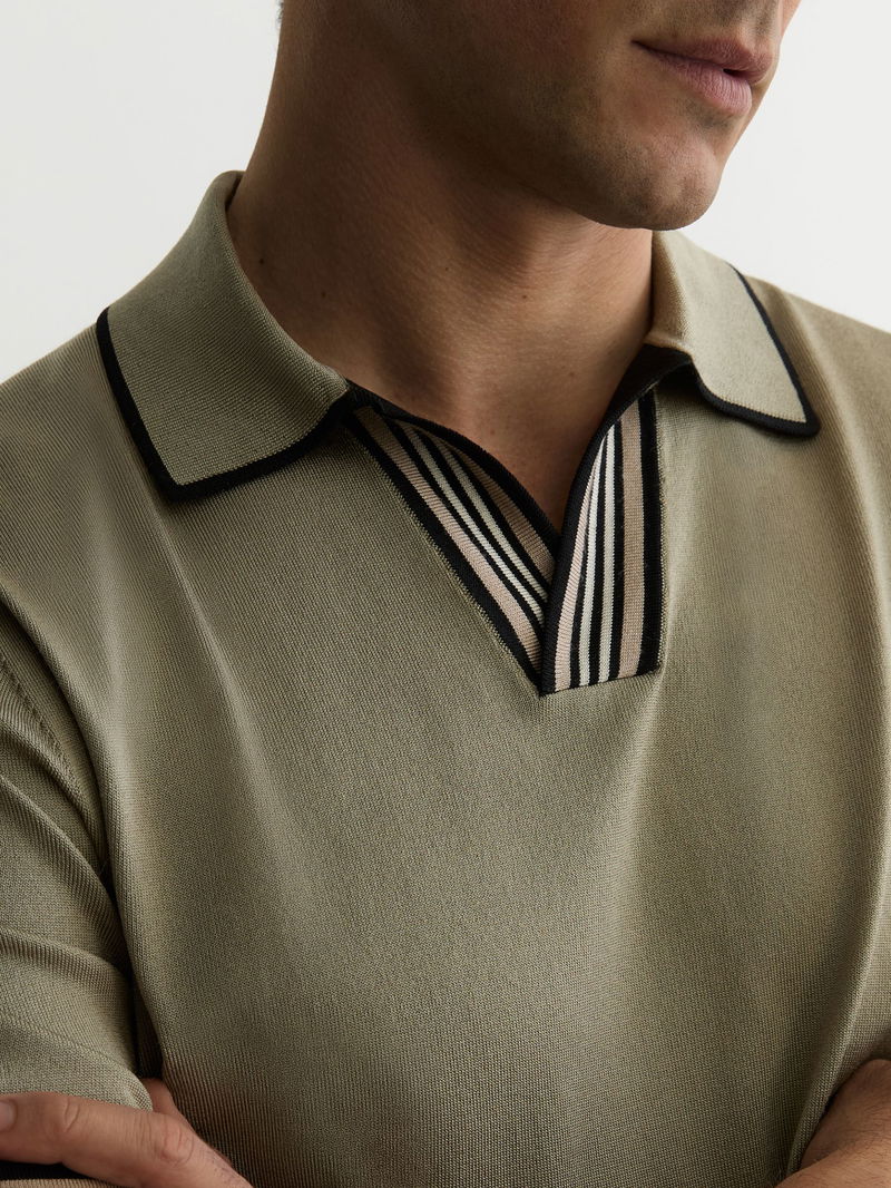 Tipped Open-Collar Knitted Polo Shirt In Sage Green