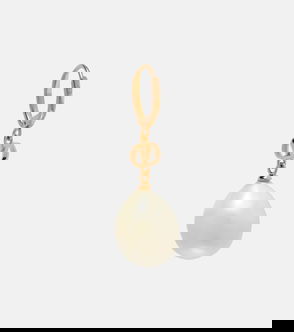 The Margot earrings are cast in an asymmetric design, each featuring a lustrous faux pearl suspended from a textured drop with molten wave-like contours.