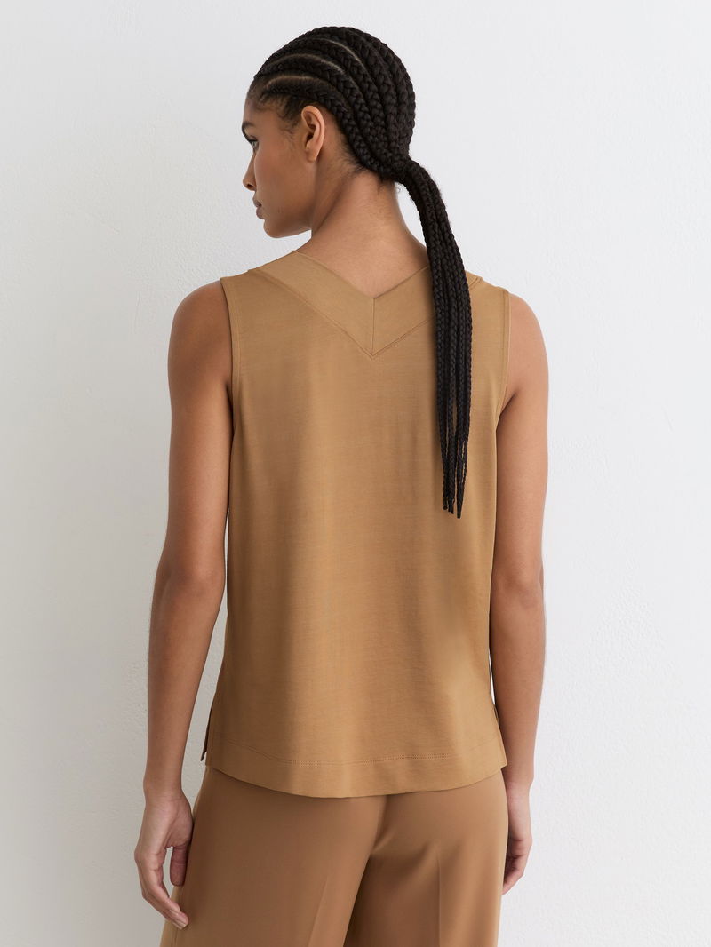 V-Neck Shell Top In Camel