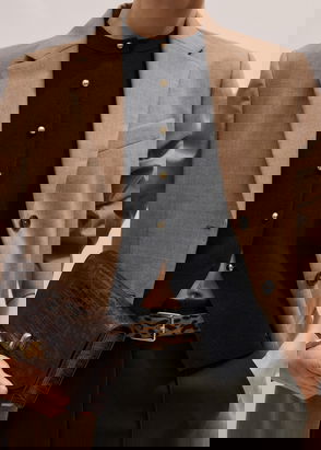 The lily waistcoat is tailored from twill blended with wool for a refined finish. It’s cut to a single-breasted silhouette with crest-embossed buttons and an adjustable strap at the back for a custom fit.