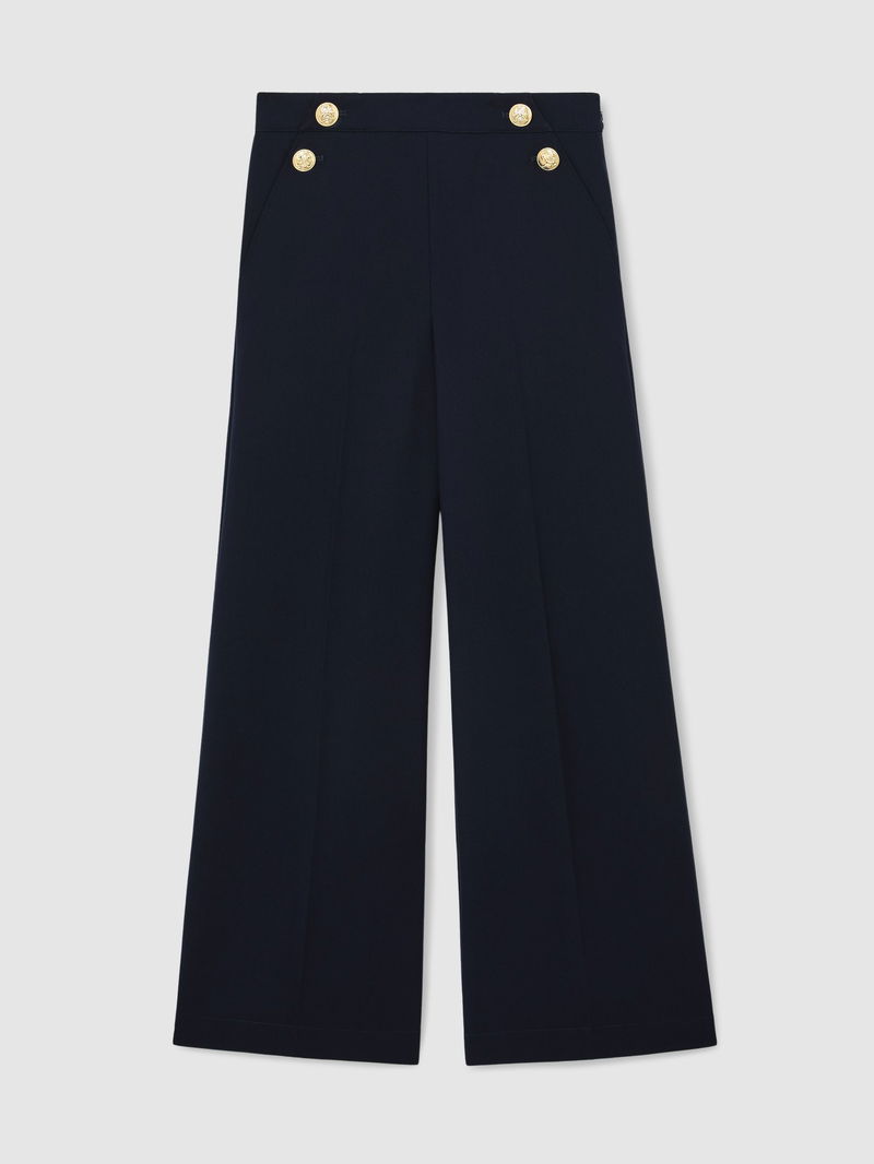 Wide-Leg Button-Detail Trousers In Navy