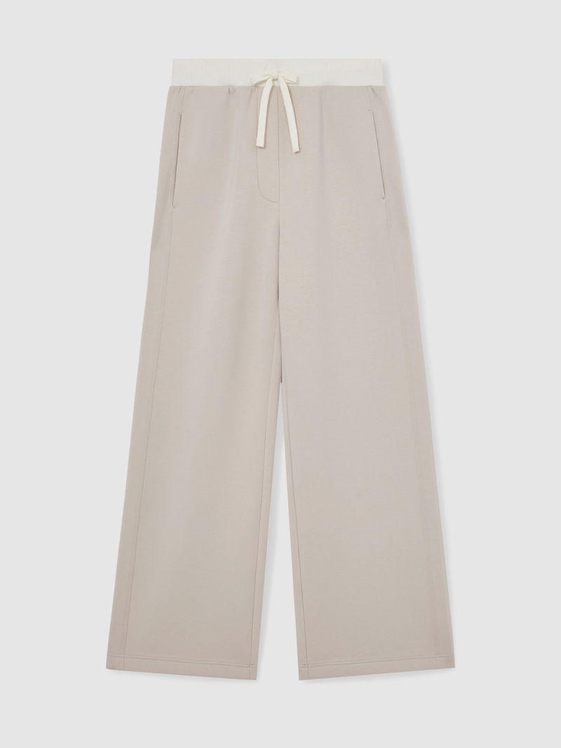 Wide-Leg Interlock Drawstring Joggers In Stone Neutral
