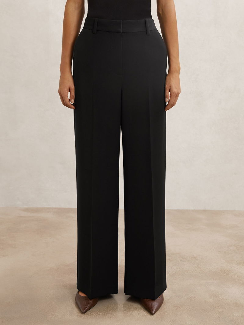 The Margeaux Black Trousers Cut from fluid fabric and tailored to a wide-leg silhouette. Pressed creases lend a refined finish.