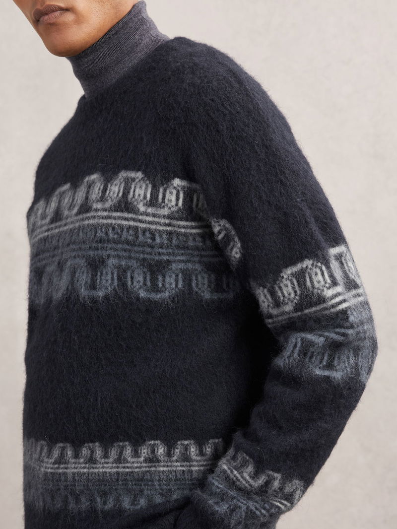 Wool-Alpaca Blend Fair Isle Jumper In Navy