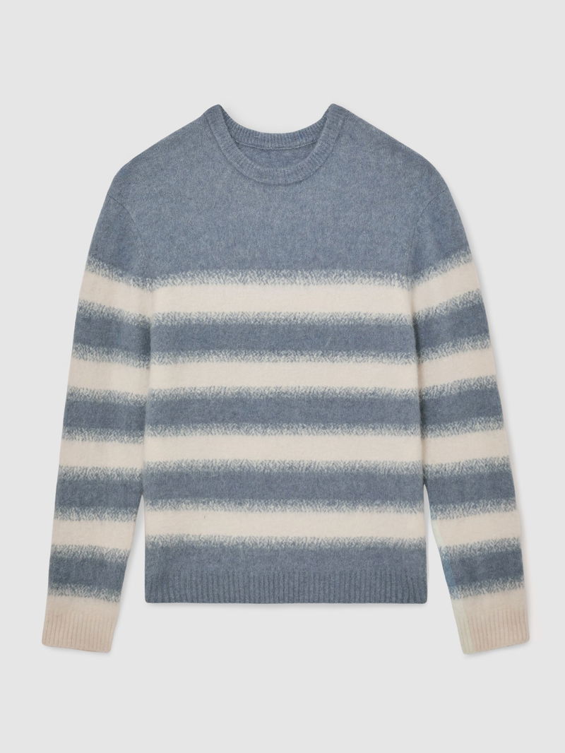Wool-Alpaca Blend Stripe Jumper In Soft Blue/White