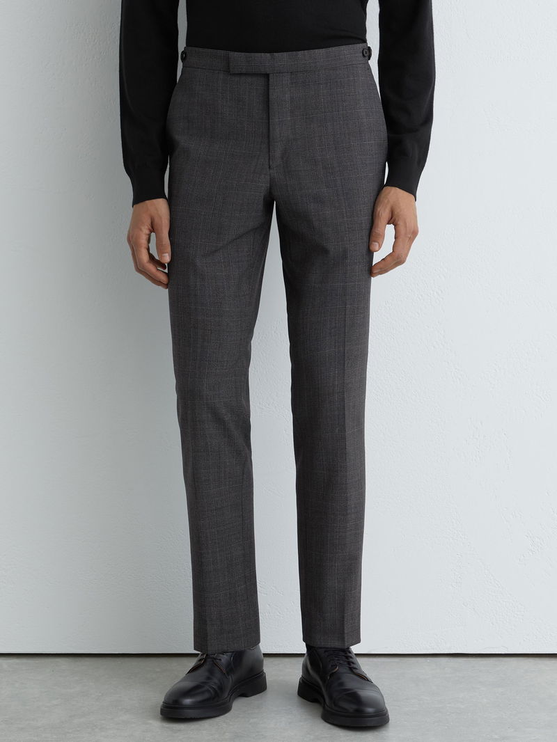Wool-Blend Check Suit Trousers Tailored-Fit In Charcoal Grey