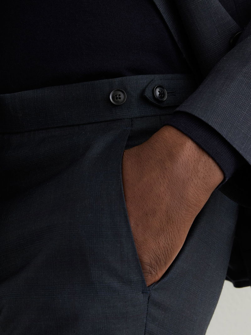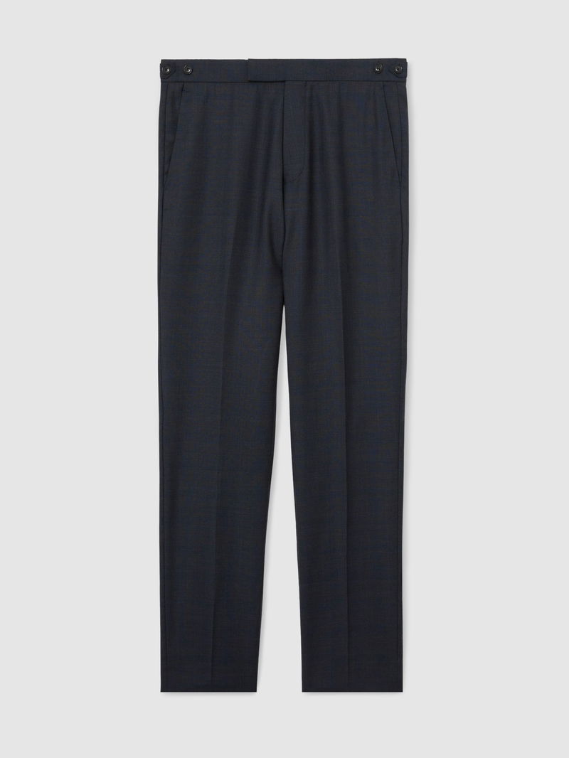 Wool-Blend Check Suit Trousers Tailored-Fit In Navy