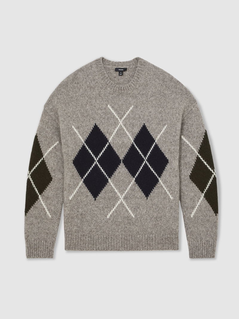 Wool-Blend Crew-Neck Argyle Jumper In Oatmeal