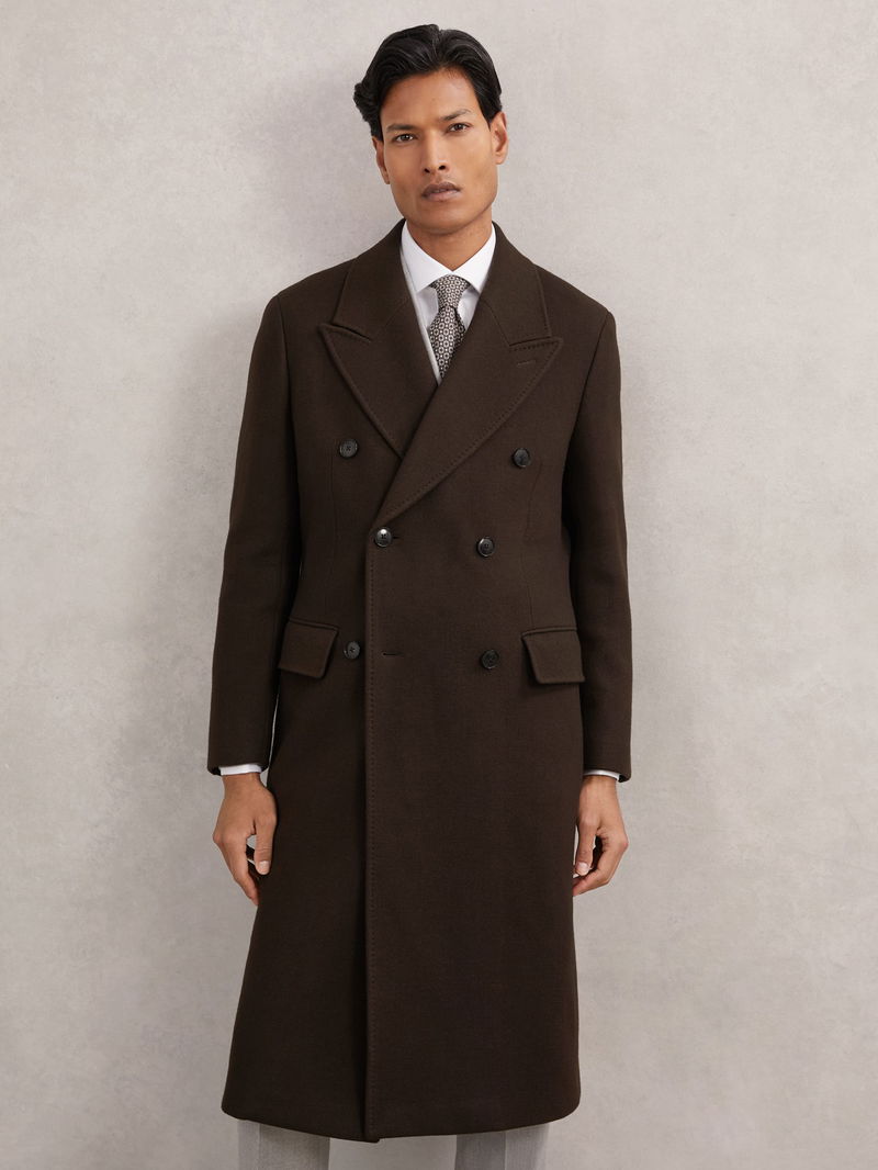 Wool-Blend Double-Breasted Overcoat In Chocolate Brown