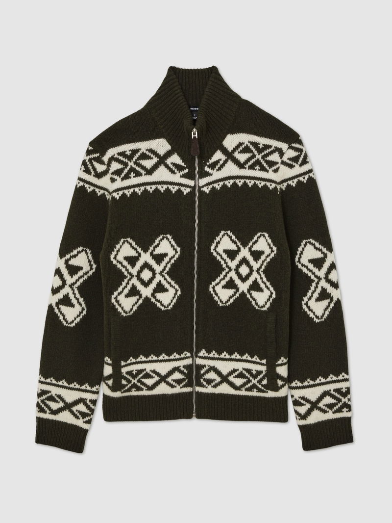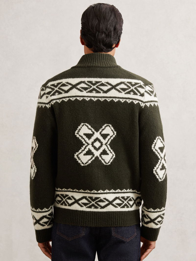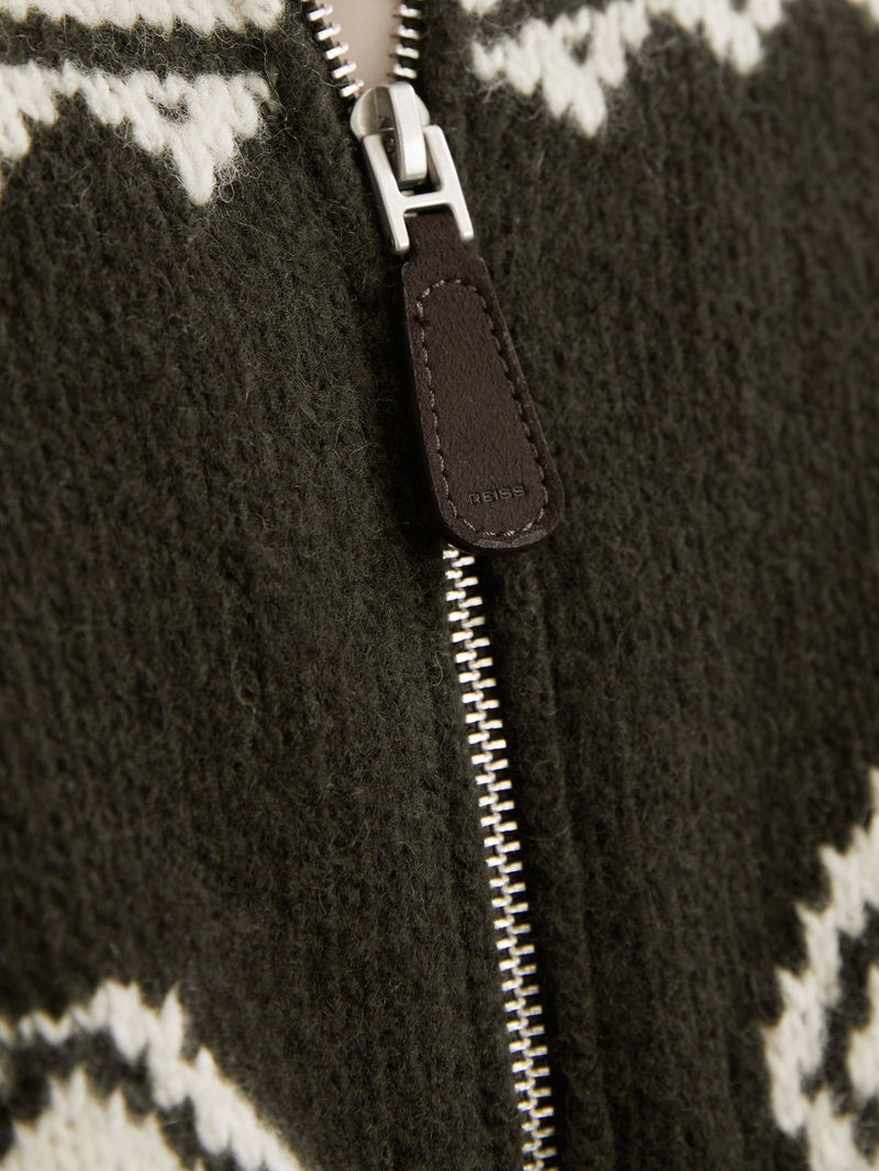 Wool-Blend Fair Isle Zip Jumper In Forest Green