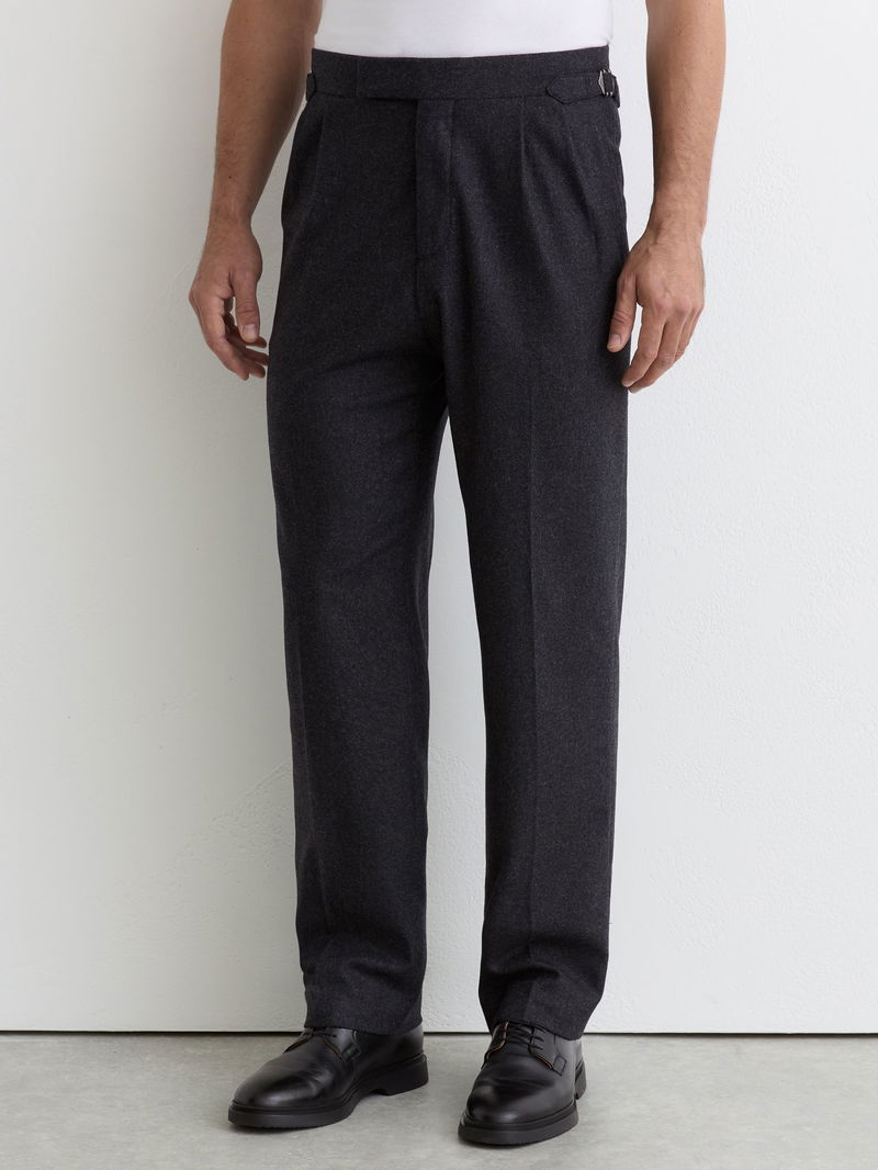 Wool-Blend Flannel Wide-Leg Trousers In Charcoal Grey