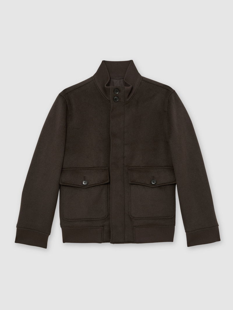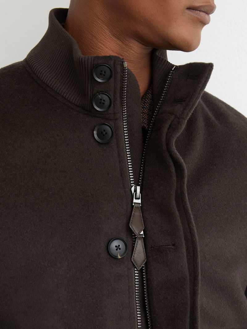 Wool-Blend Funnel-Neck Bomber Jacket In Chocolate Brown