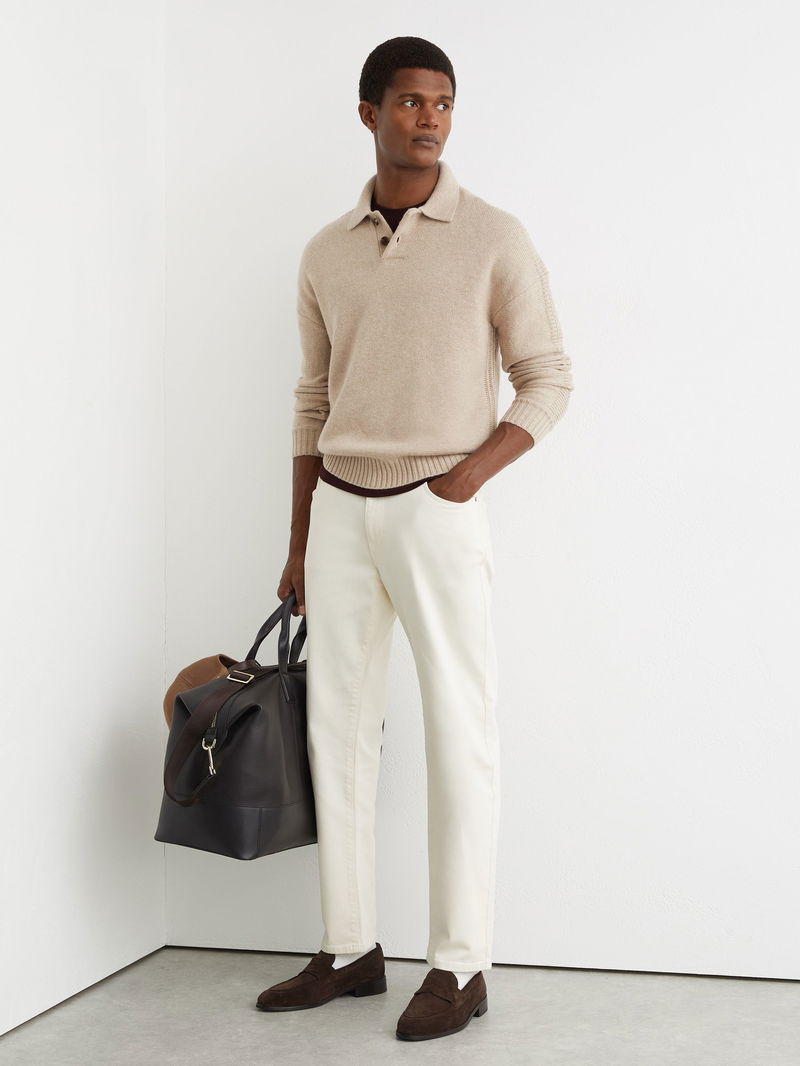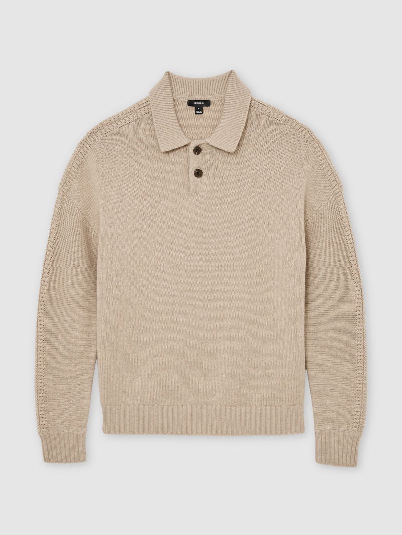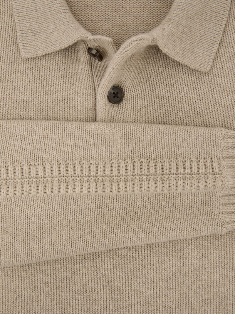 Wool-Blend Half-Button Polo Jumper In Oatmeal
