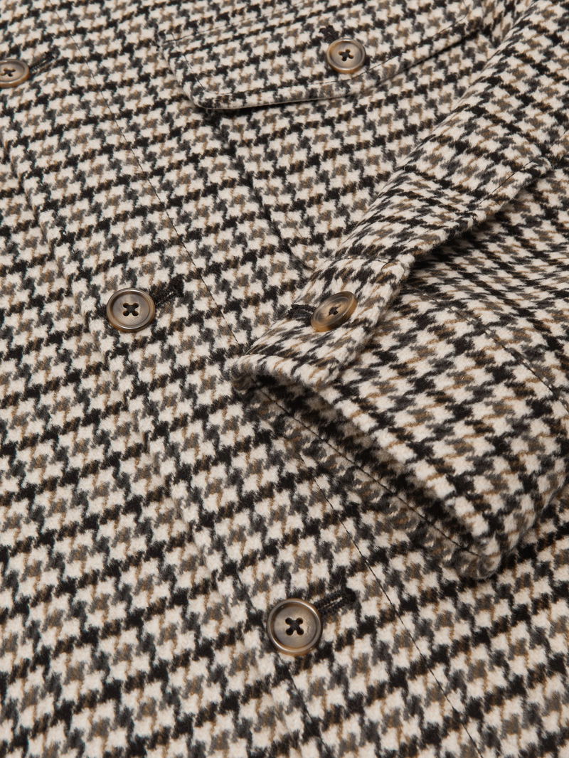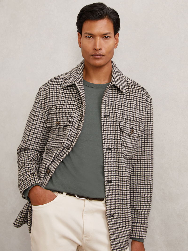 Wool-Blend Houndstooth-Check Overshirt In Grey