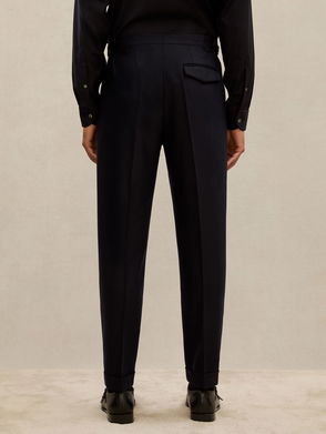 The Sinatra tuxedo trousers are crafted from a wool-blend jacquard, offering subtle texture and depth. Cut to a tailored fit, they feature button side adjusters and a hook-and-bar fastening with zip for a polished, party-ready finish.