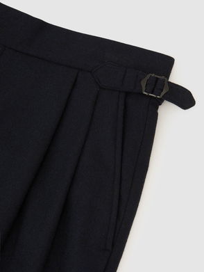 The Navy Neave trousers are crafted from a fluid wool-blend twill that drapes to an effortless wide-leg silhouette. Subtly elevated by pinstripes, they have a comfortable elasticated waistband for both style and ease.