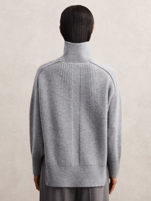 Designed with a slouchy hood, the navy Chloe jumper takes casual knitwear to the next level. Crafted from a wool blend, the understated style is subtly elevated by varying fine ribs.
