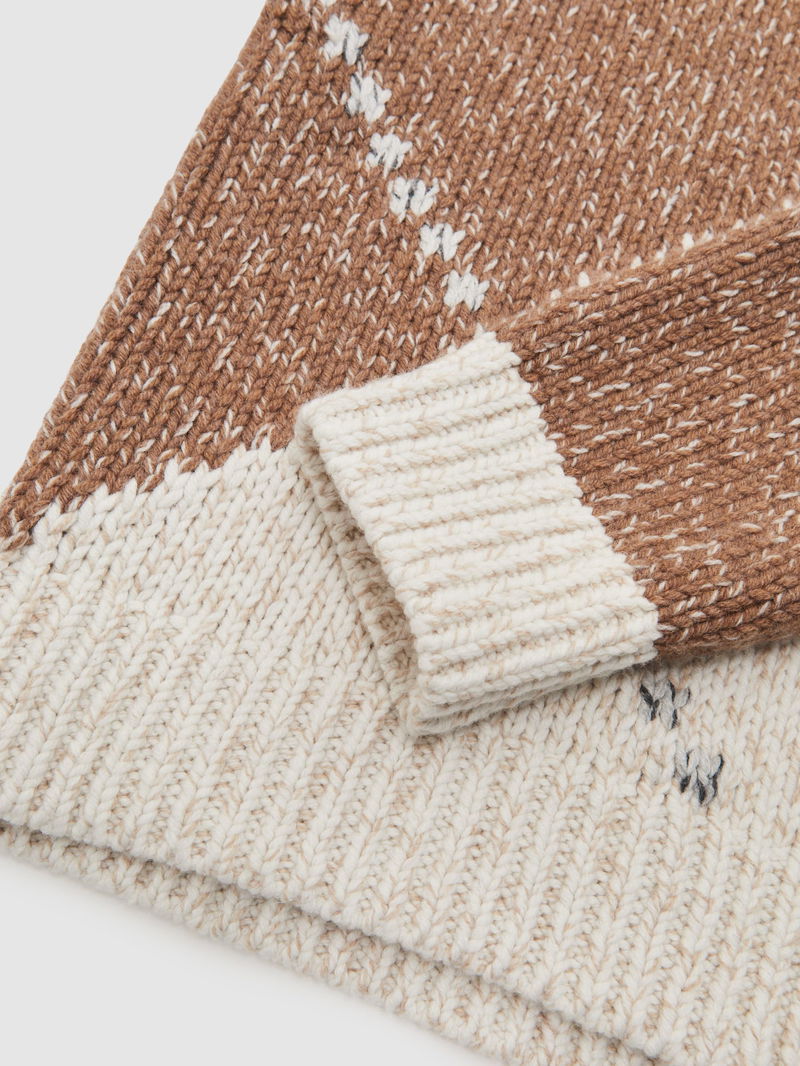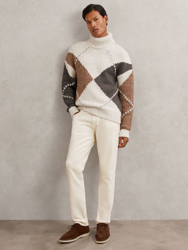 Wool-Blend Roll-Neck Argyle Jumper In Camel Brown Multi