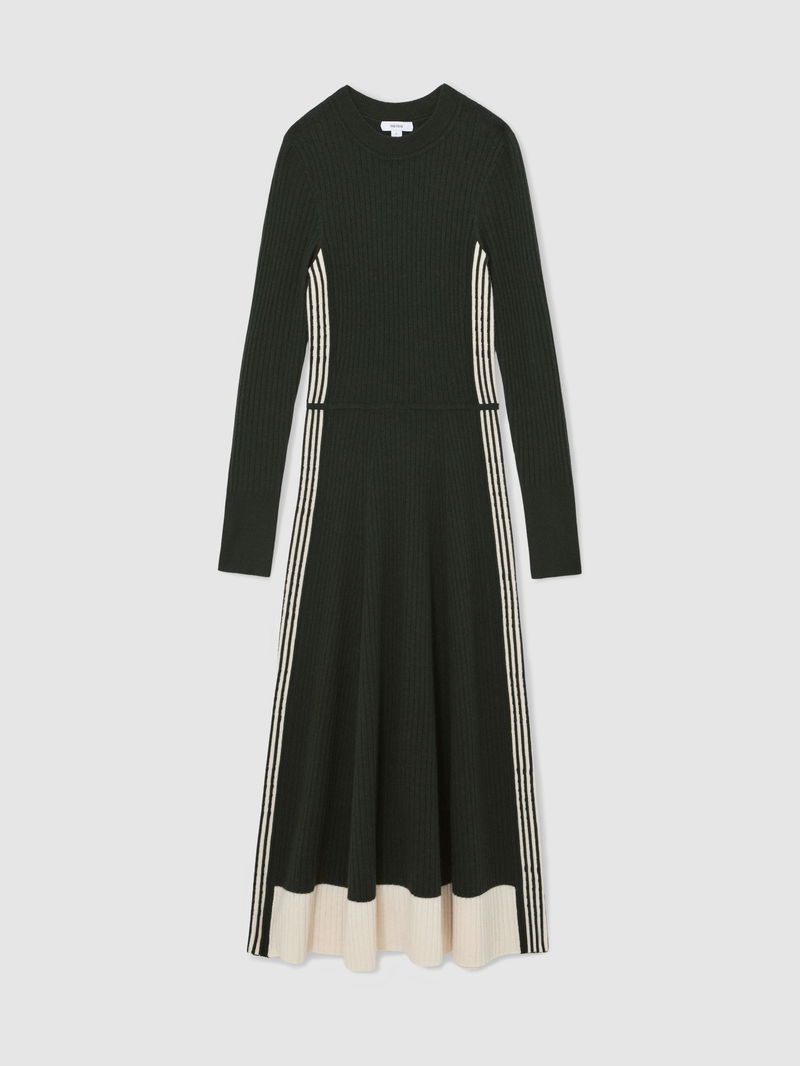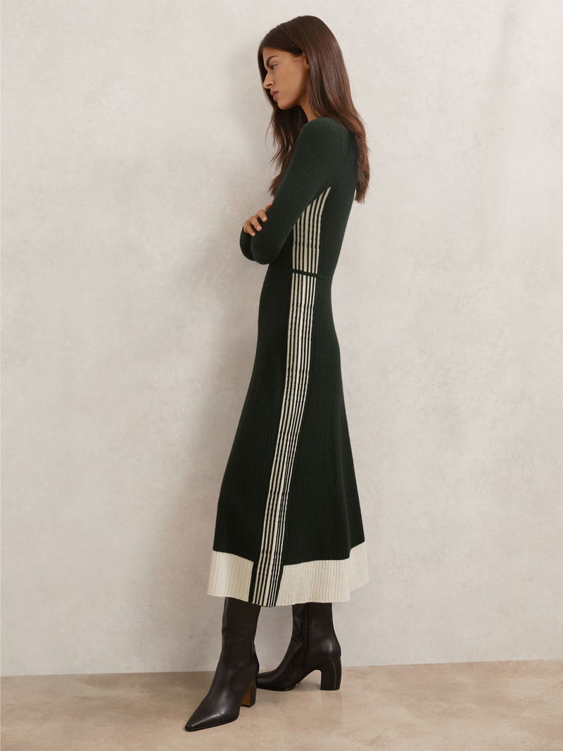 Wool-Blend Stripe-Detail Knitted Dress In Khaki Green