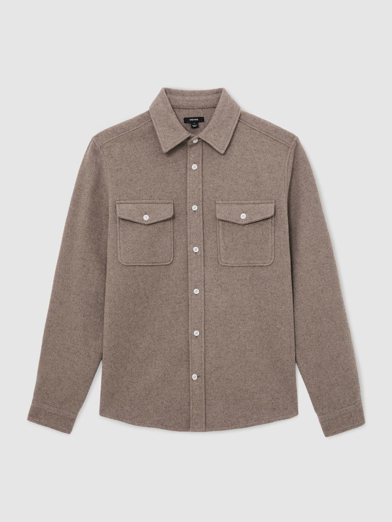 Wool-Blend Twin-Pocket Overshirt In Oatmeal Melange