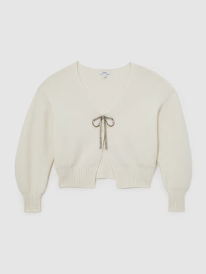 The sage Rixy cardigan is knitted from wool with a hint of cashmere for supreme softness. The cropped length and drop shoulders create a relaxed, slightly boxy silhouette. Wool-cashmere blend Mélange Single strip of ridge stitching to reverse.