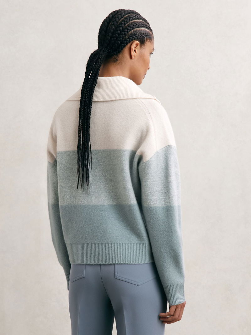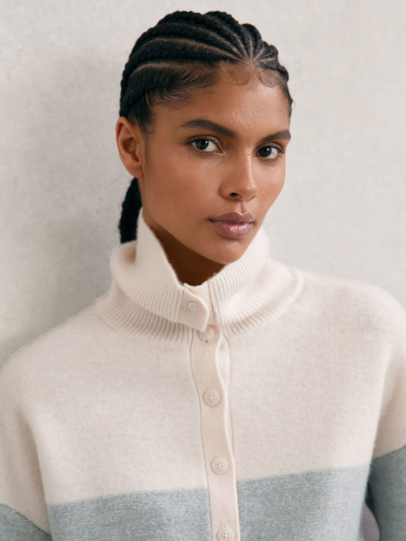 Wool-Cashmere Stripe Buttoned Jumper In Cream/Blue